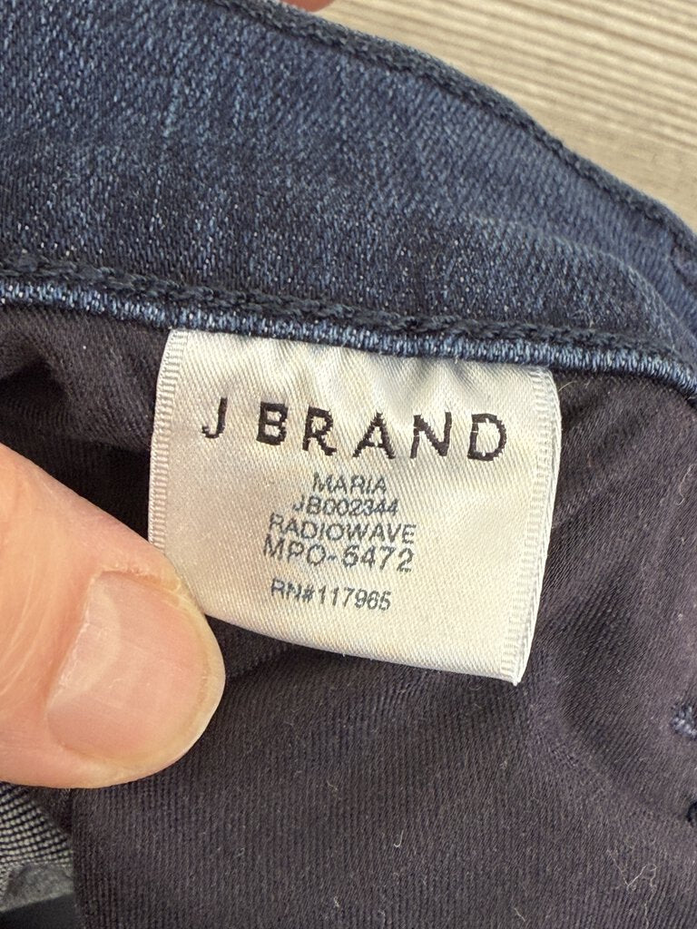 Like new condition is found with this pair of women’s jeans by J Brand. Skinny leg jeans, size 28, navy denim.