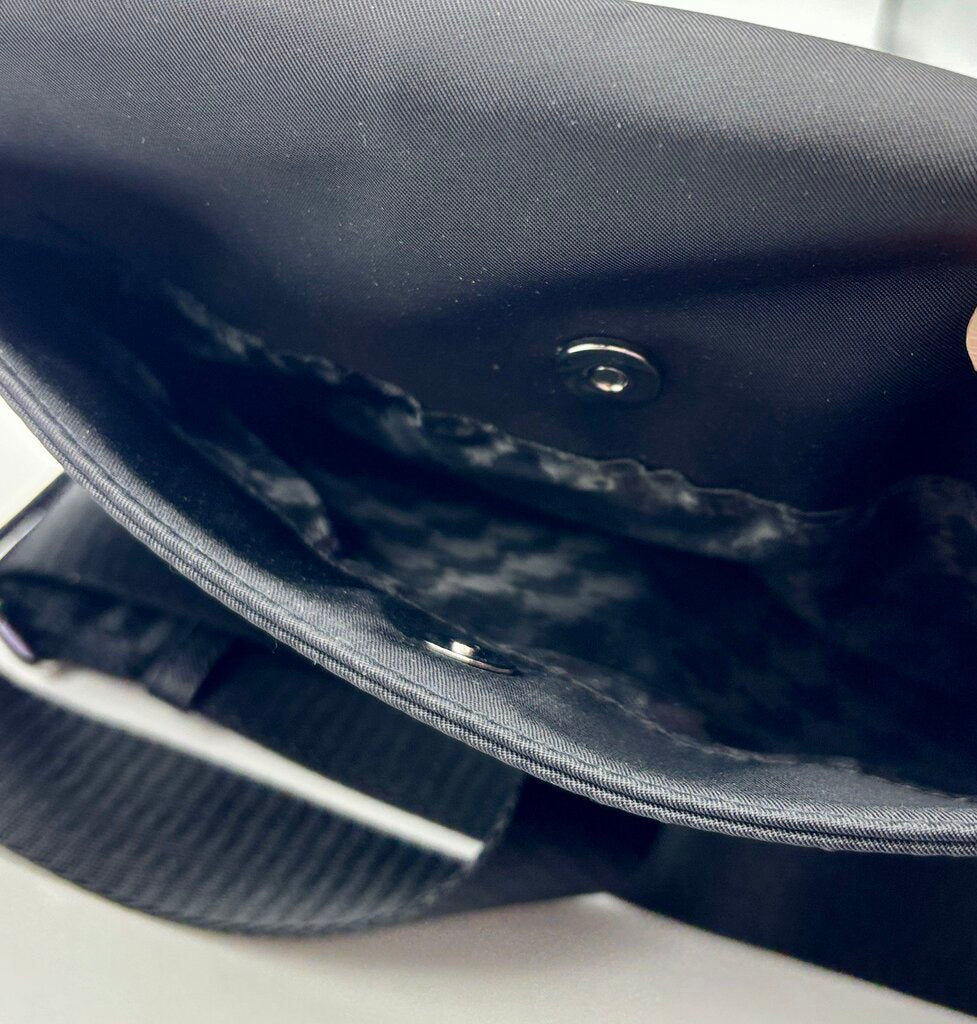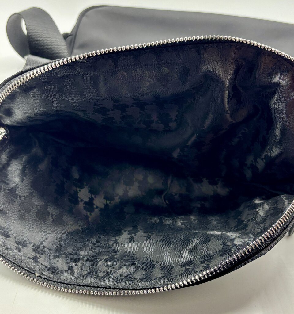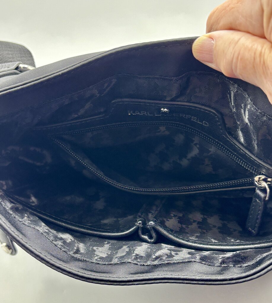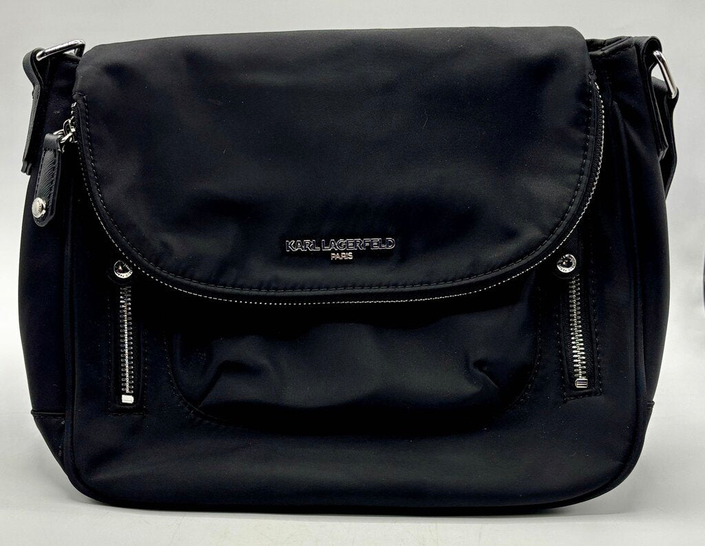 Very nice Karl Lagerfeld crossbody bag. It is perfect for travel and around the city. It is light weight with a wide adjustable strap. The bag is pre-owned but shows no wear.