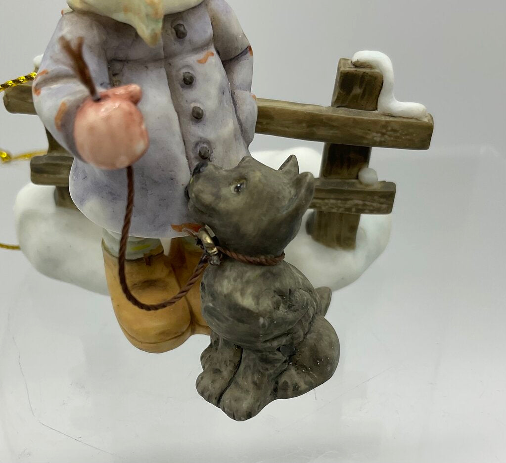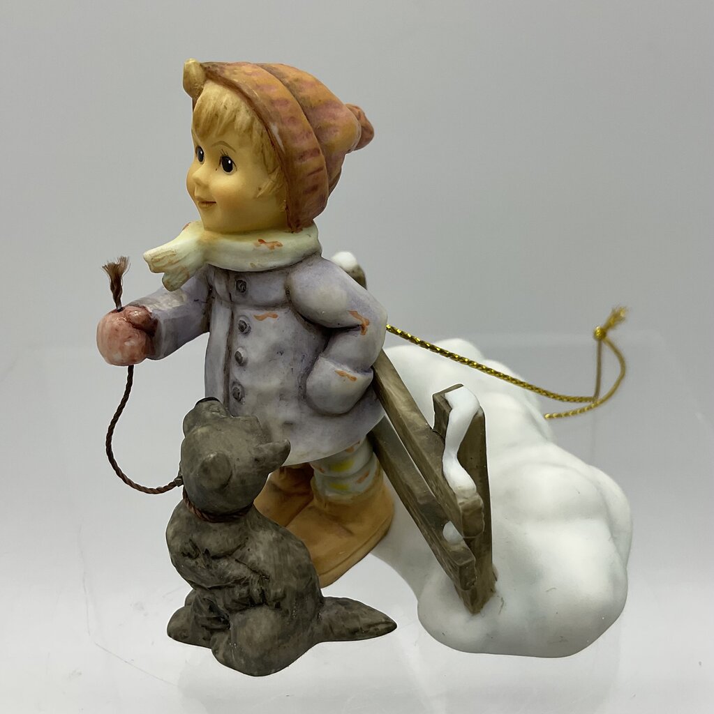 These two (2) ornaments were produced by M.J. Hummel in the late 2000s and feature two children, one dropping off a letter to Santa in the mailbox, and another standing with her dog outside in the snow. Each ornament is still in its original box with foam packaging, and they are both in fantastic condition. Please carefully review all photos for overall condition. Each ornament measures about 3 1/2” tall and both boxes together weigh 9.6 ounces. Estate item. Condition is pre owned. Ships USPS Ground Advantage Mail.