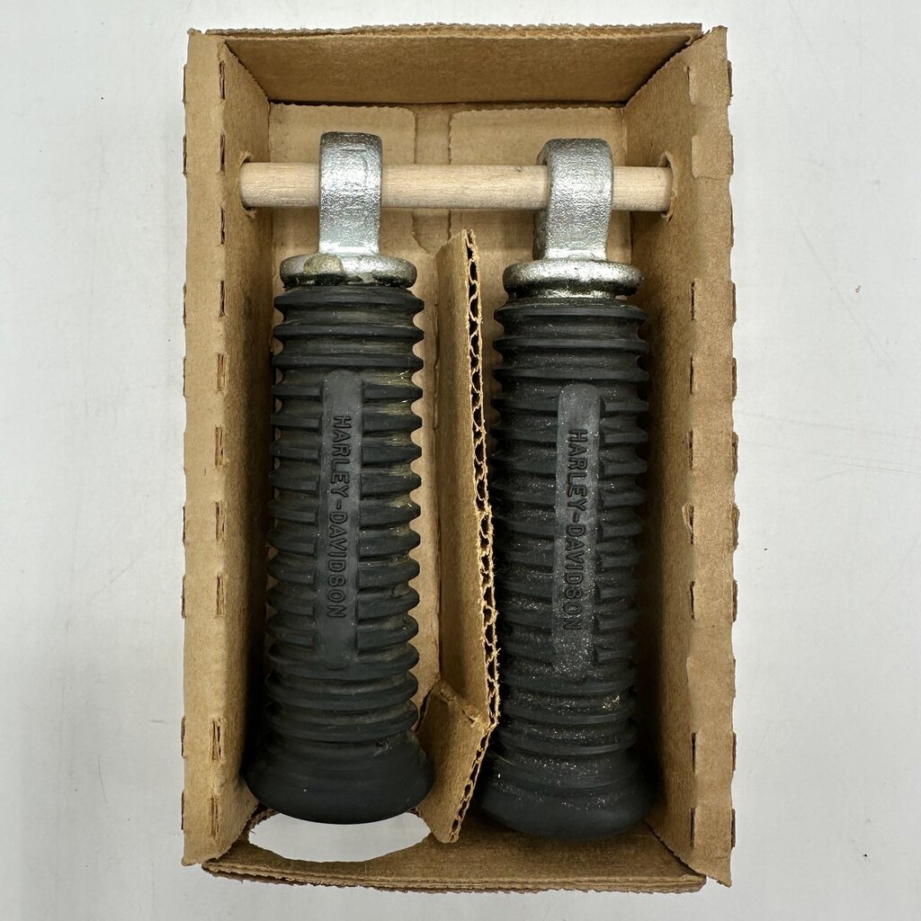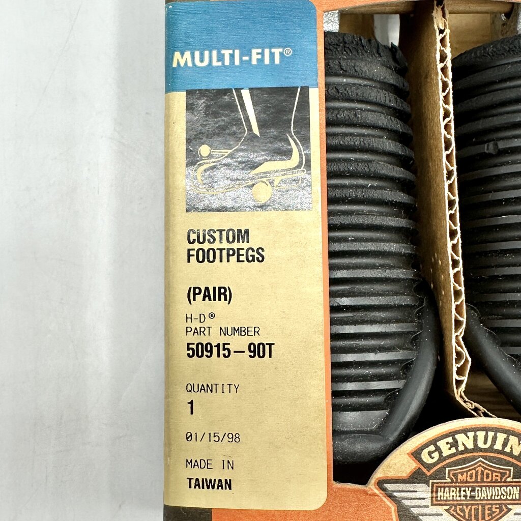 Lot of 3 vintage 1997/98 Genuine Harley Davidson Custom Foot Pegs. We have one pair of 50916 -90T and two pairs of 50915-90T. All come in their original box and appear to be unused. One foot peg shows light loss of the rubber right by the mounting mechanism, they are all a little dirty from storage but are otherwise in very good condition. Please carefully review all photos for condition details and compatibility information.
