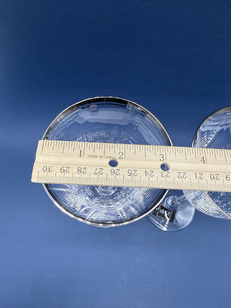 Estate set of 2 Mikasa Sonata Platinum crystal water glasses with original tags, never used. They measure 8.25” tall with a 3.25” diameter. Elegant.