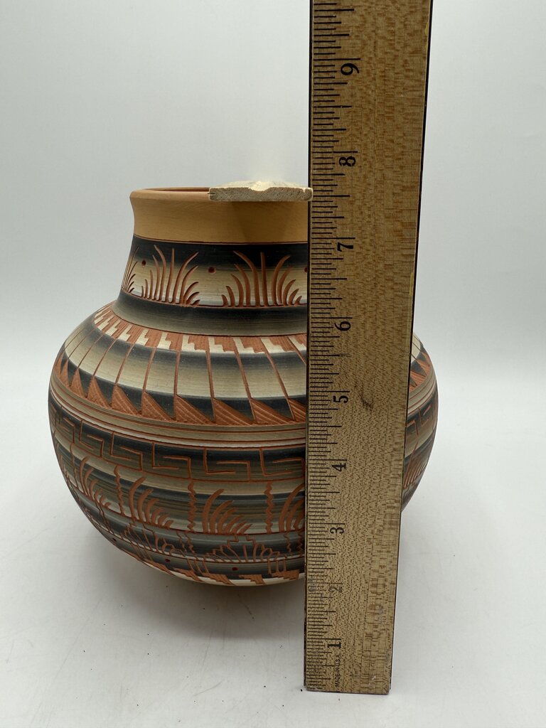 Native American Navajo Etched Clay Pottery 7” EUC /roh