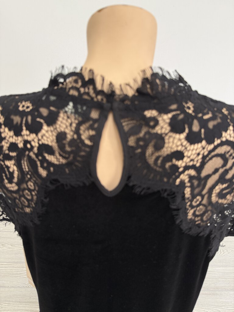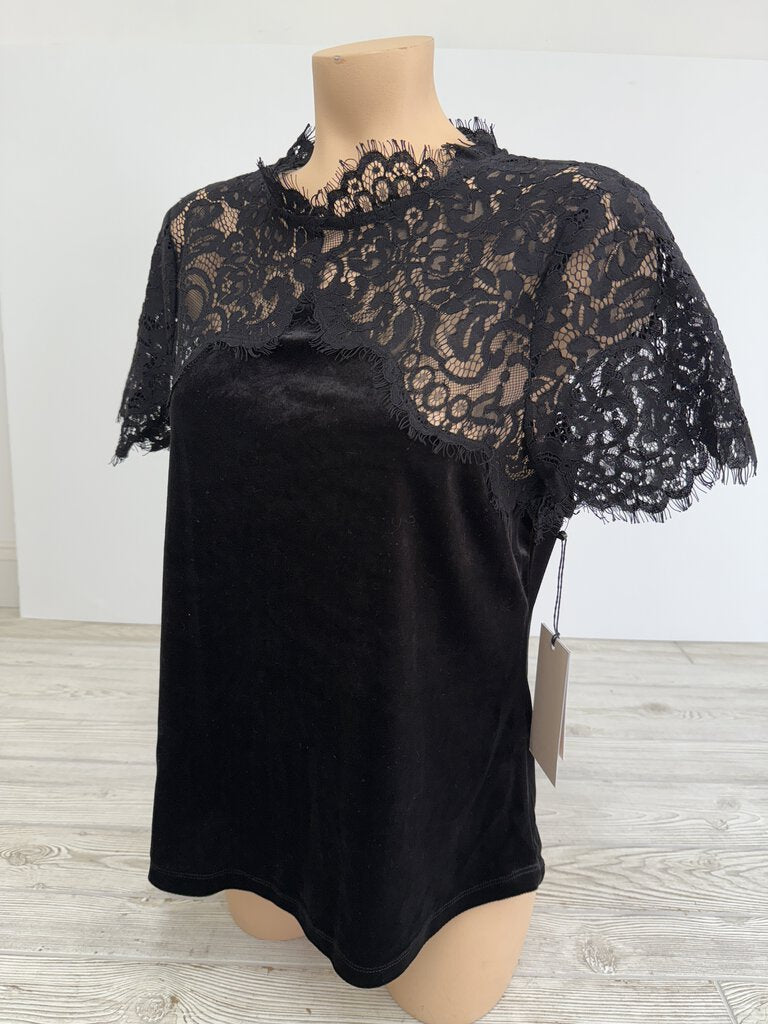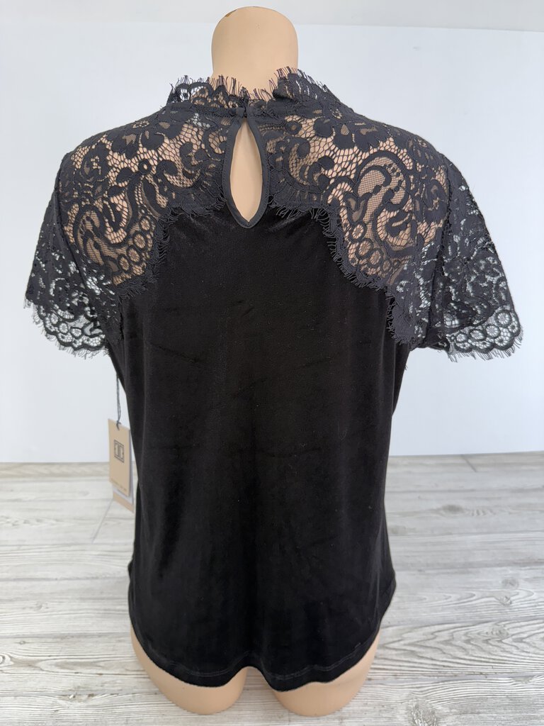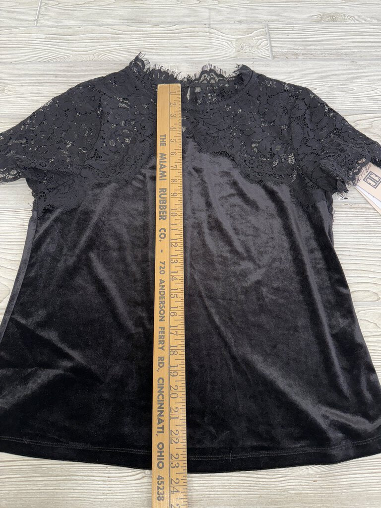 NWT Ivanka Trump Short Sleeve Black Velvet & Lace Top Sz.L /rb
