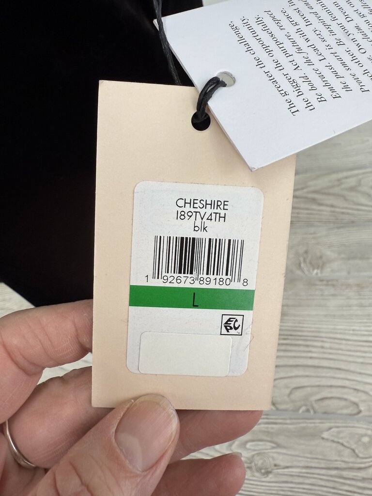 New with Tags, Ivanka Trump Women’s blouse Cheshire #189TV4TH Black short sleeve, lace top, velvet body. Size large.