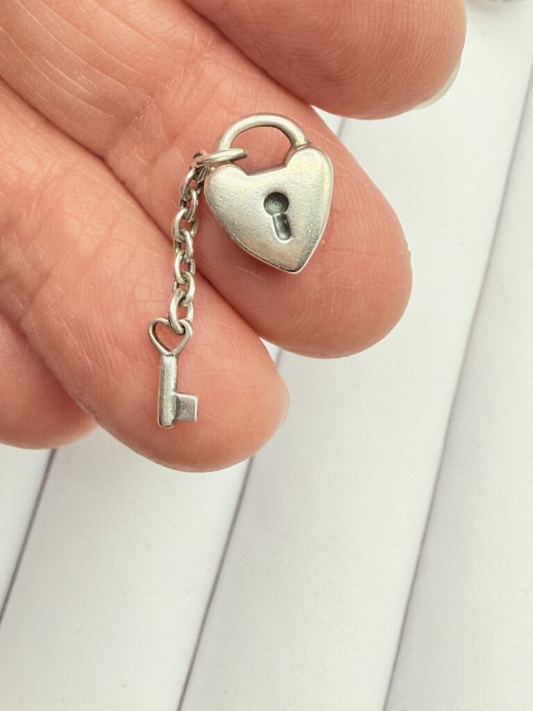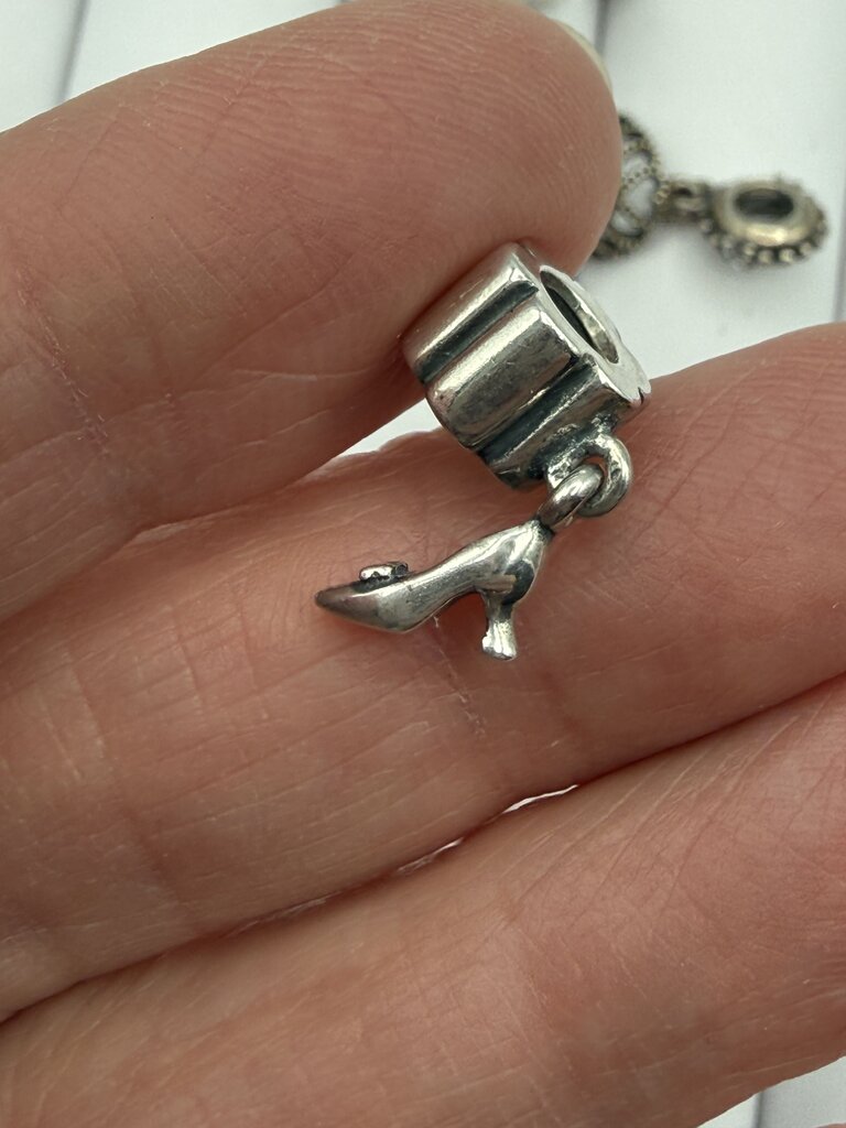 This Estate lot of 5 Pandora Sterling Silver dangle charms includes the following charms, Crown, Free Spirit Horse, Baby Shoe, Women’s High Heel, Heart Lock and key on a chain. All in good clean condition.