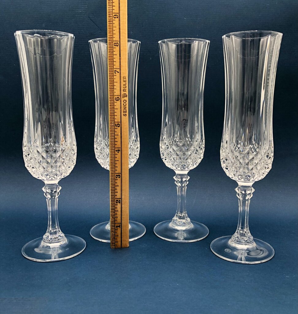 Set of 4 Cristal D’Arques Durand Longchamp Champagne Flutes /b