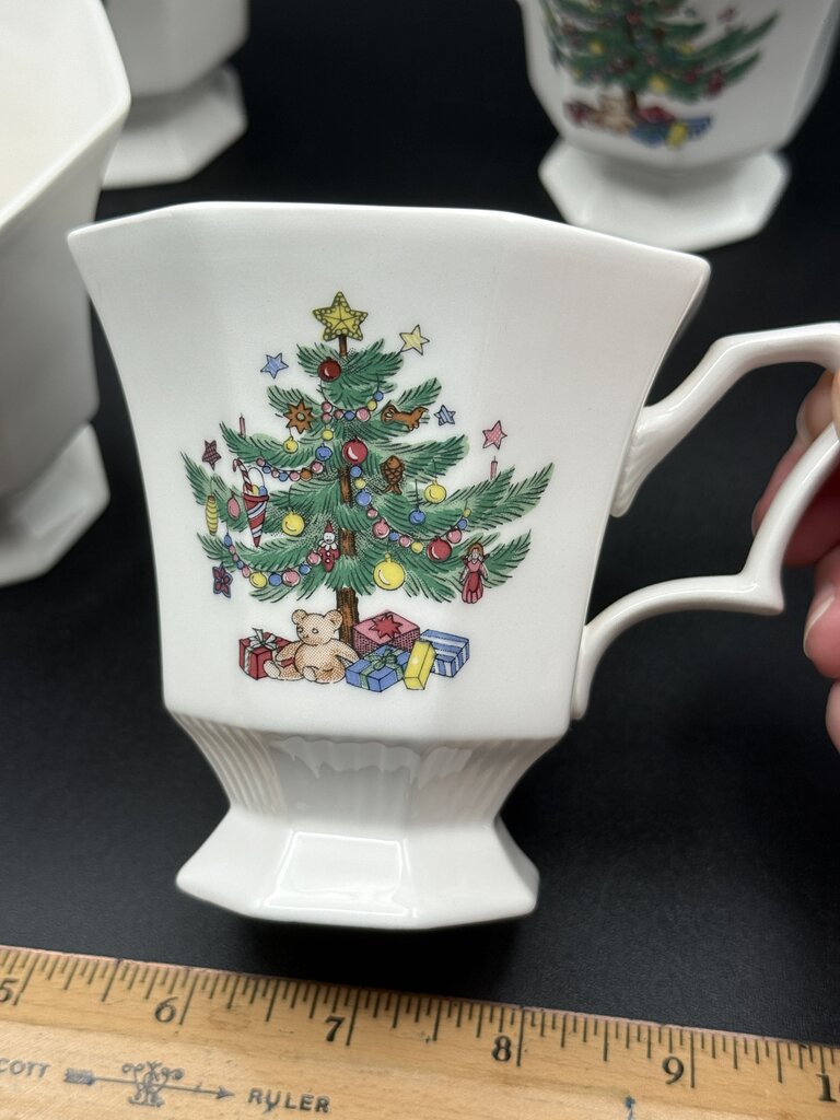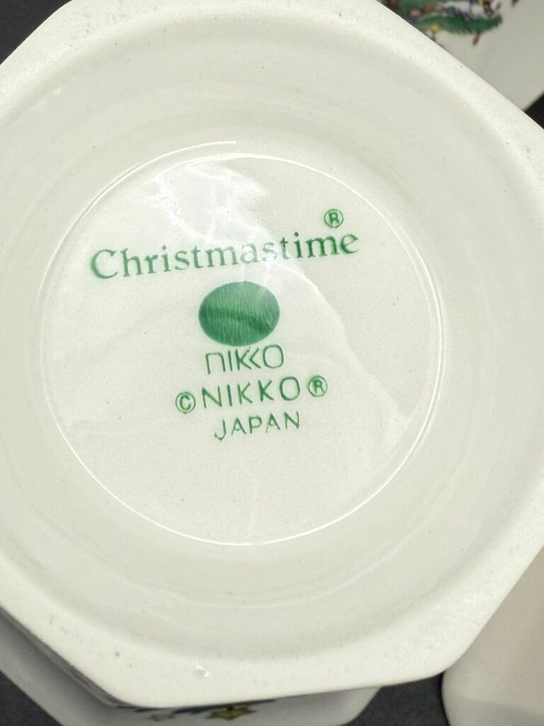 Set of 4 matching Nikko Christmastime Pedestal Mugs made in Japan. Excellent condition, no chips, cracks, crazing or stains. Perfect for the Holiday parties.