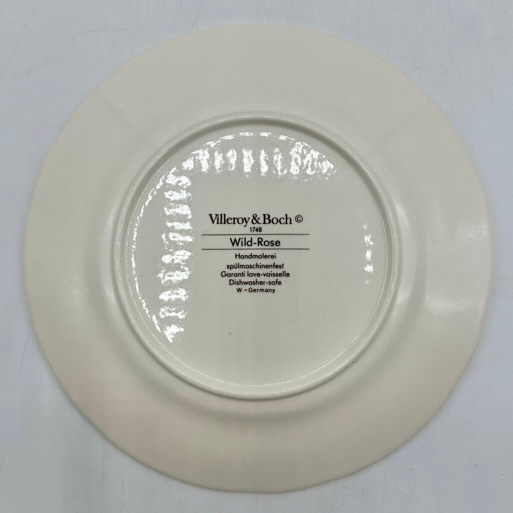 Set of 6 Villeroy & Boch Wild Rose fine china salad plates. Made in Germany. The lovely hand painted Wild Rose pattern was a popular generational favorite from 1968 until 2018. Our plates are marked West Germany which dates them to before 1990. They have an 8 1/8” diameter and are in very good vintage condition, no chips, cracks, or crazing. Minimal utensil wear.