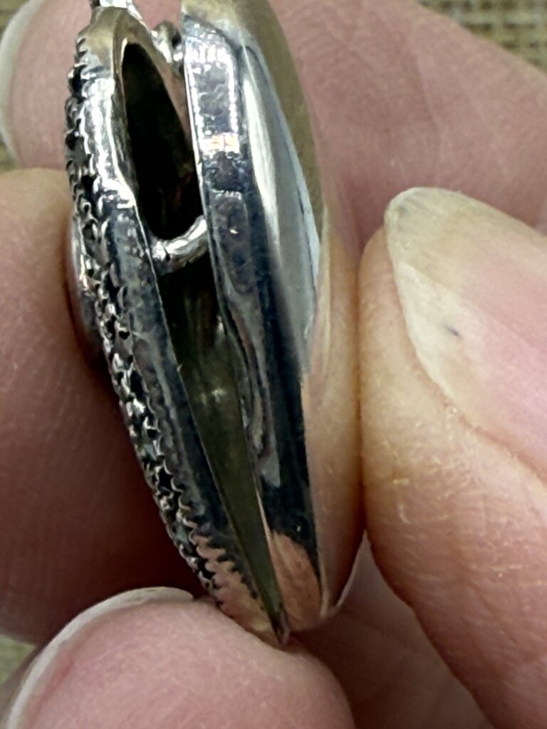 Sterling Silver Box 24” Chain Necklace Marcasite Garnet Heart Locket /ro