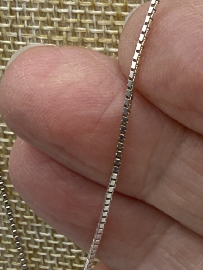Show your loved one how much you care with this 24” sterling silver box chain necklace featuring a sterling silver heart shaped locket with Marcasite stones and garnet center. Gram weight is 12 grams. Heart pendant measures approximately 3/4” x 3/4”. Chain and locket are marked .925 sterling. Light scratches on the back of the locket. Fully functioning clasp and locket.