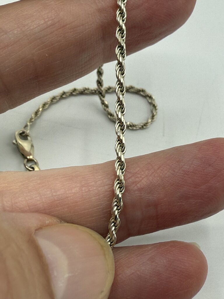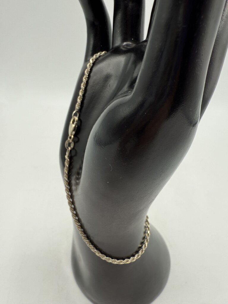 Unisex Sterling Silver Twisted Rope Chain Ankle Bracelet hallmarked .925 Sterling made in Italy. Chain has a lobster claw clasp and measures 9.5” in length. Gram weight is 3.5 grams. No damage found.