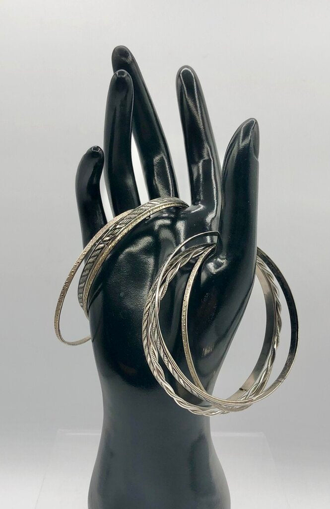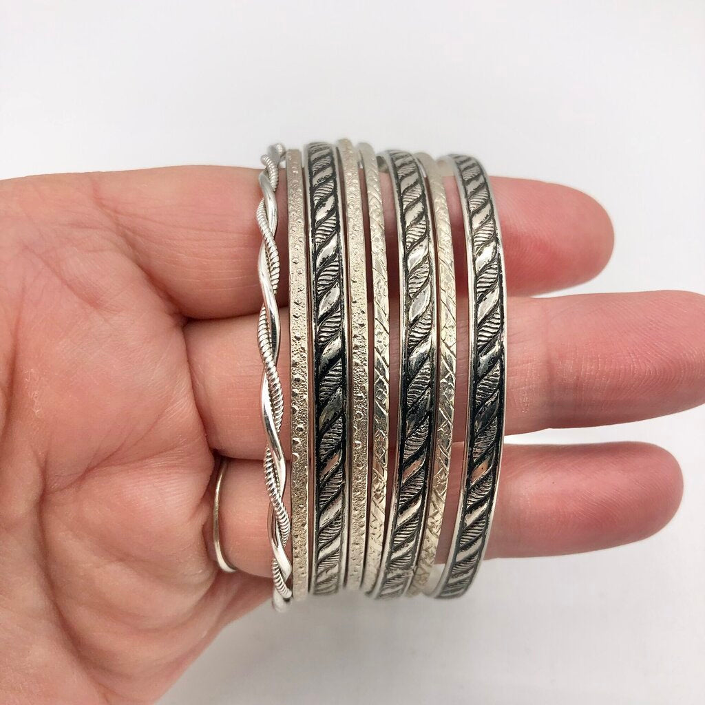 Vintage Bundle of 8 Bohemian Bangle Bracelets Silver Tone /b