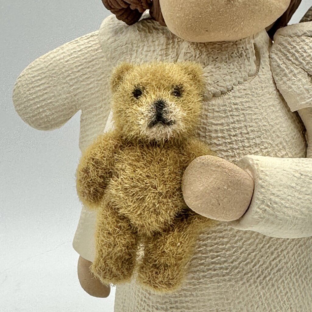 Vintage Carol Roeda Handmade Clay Singing Angel Holding A Teddy Bear /cb