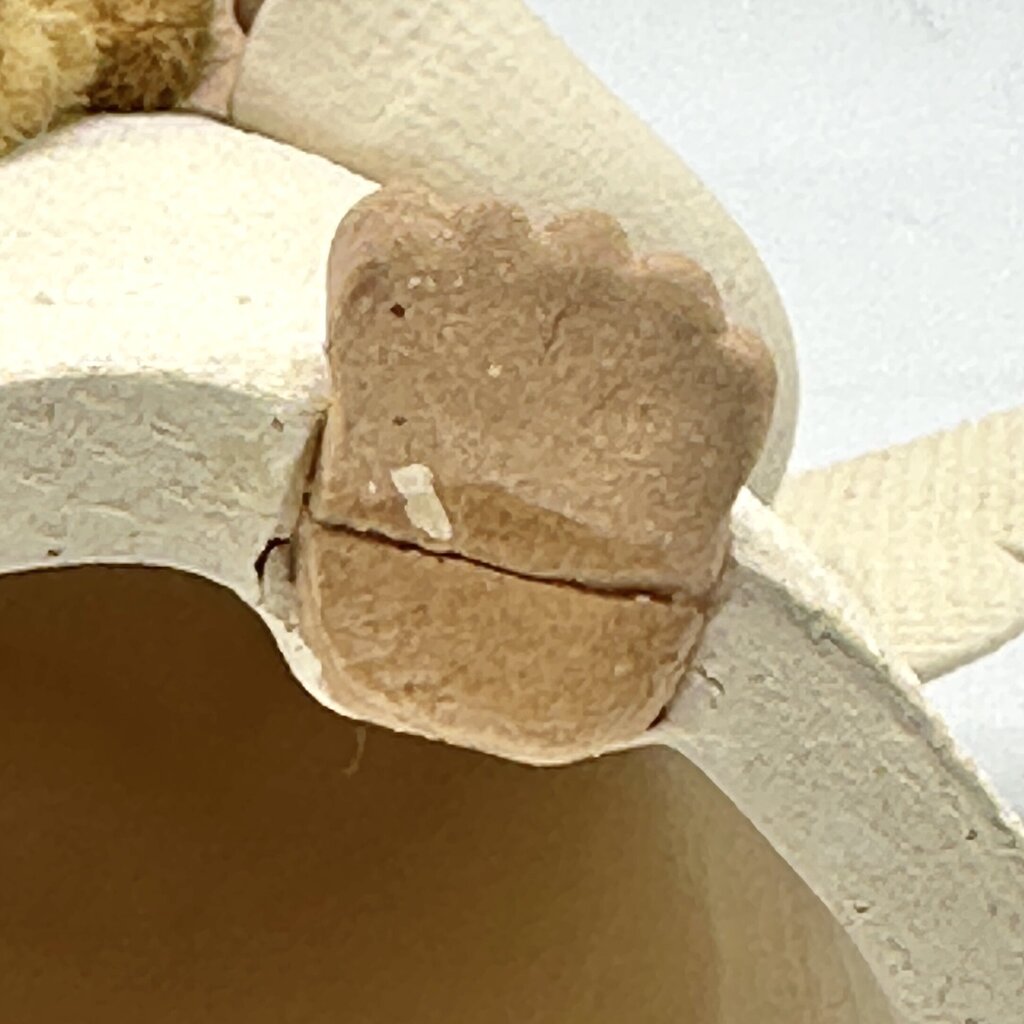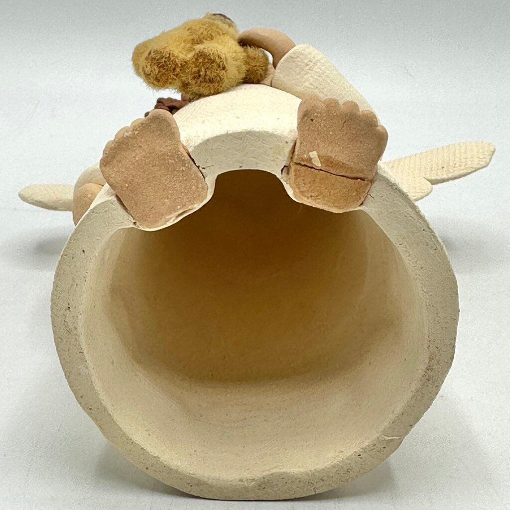 Vintage Singing Angel with teddy bear by artist Carol Roeda. This absolutely charming piece features a rustic folk art aesthetic, and is a one of a kind pottery creation, handcrafted from clay by the artist herself. The angel is 7” tall, it is in good vintage condition. One of the angel’s feet was repaired,but that is not visible when it is displayed.