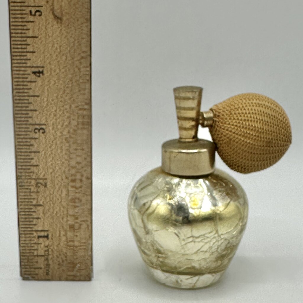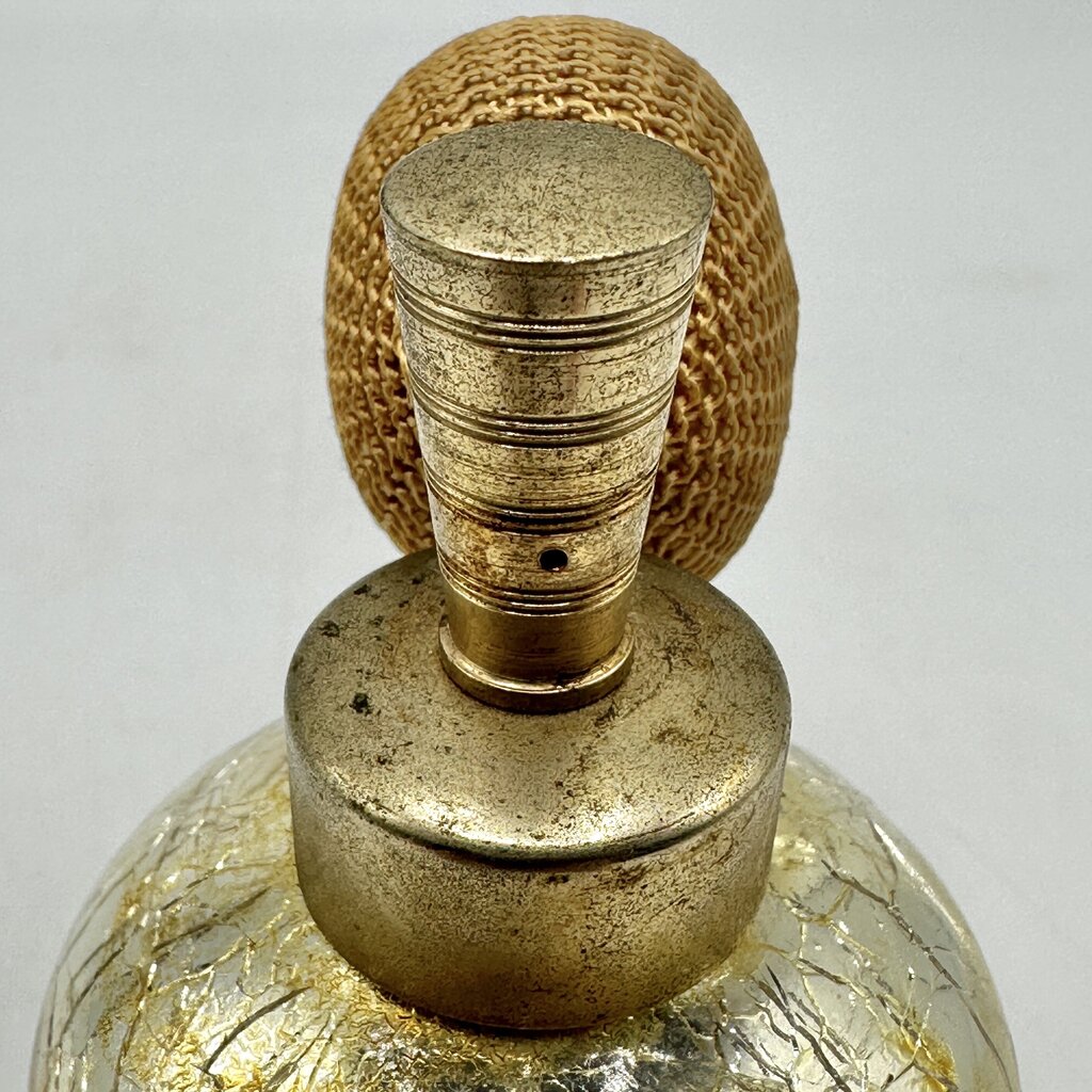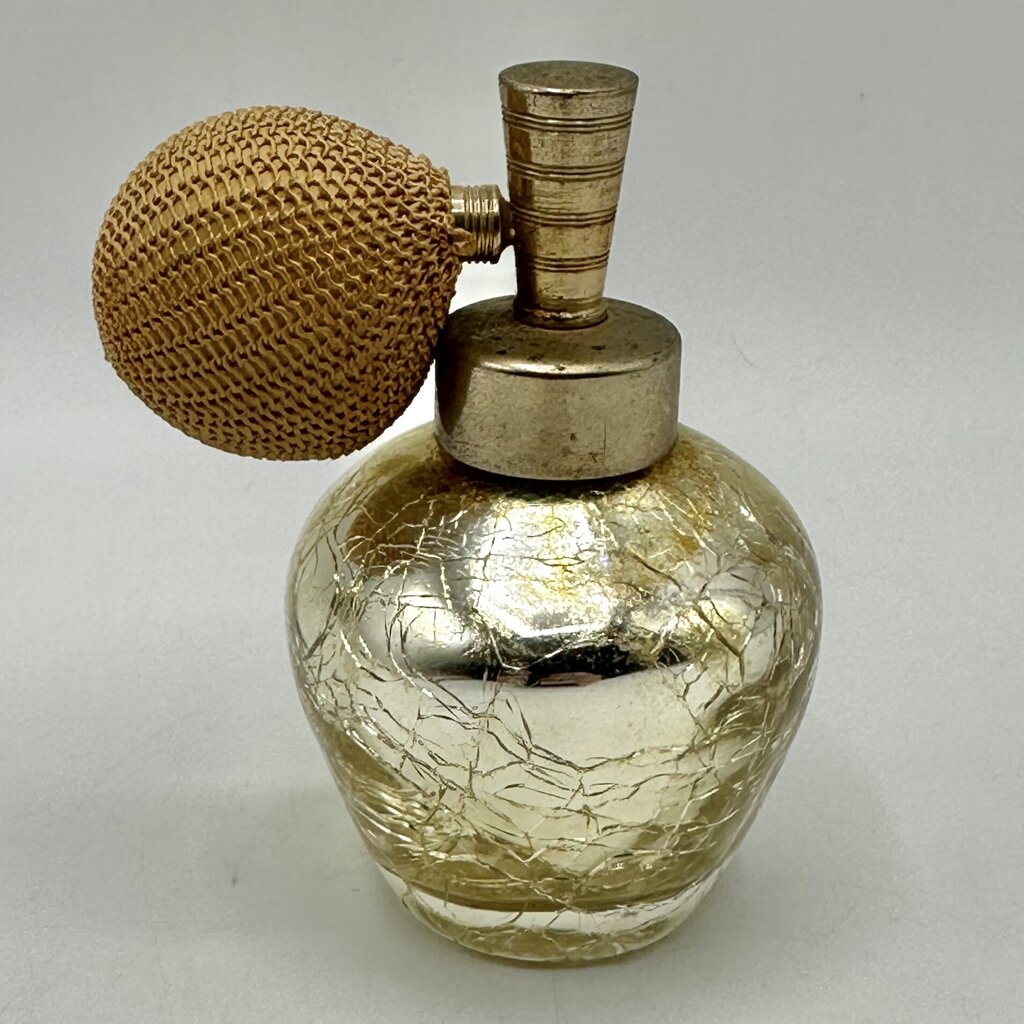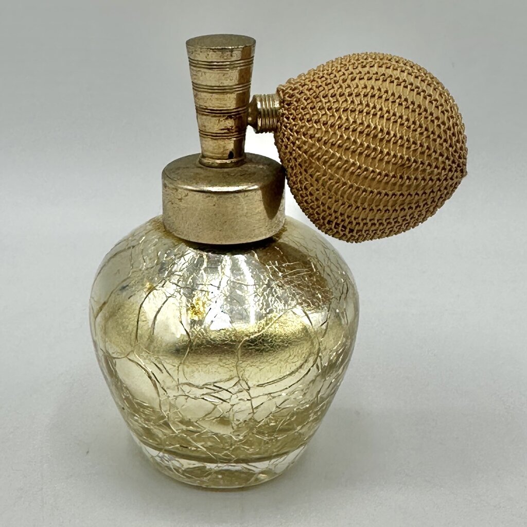 Vintage DeVilbiss Gold Crackle Glass Perfume Bottle Atomizer /cb