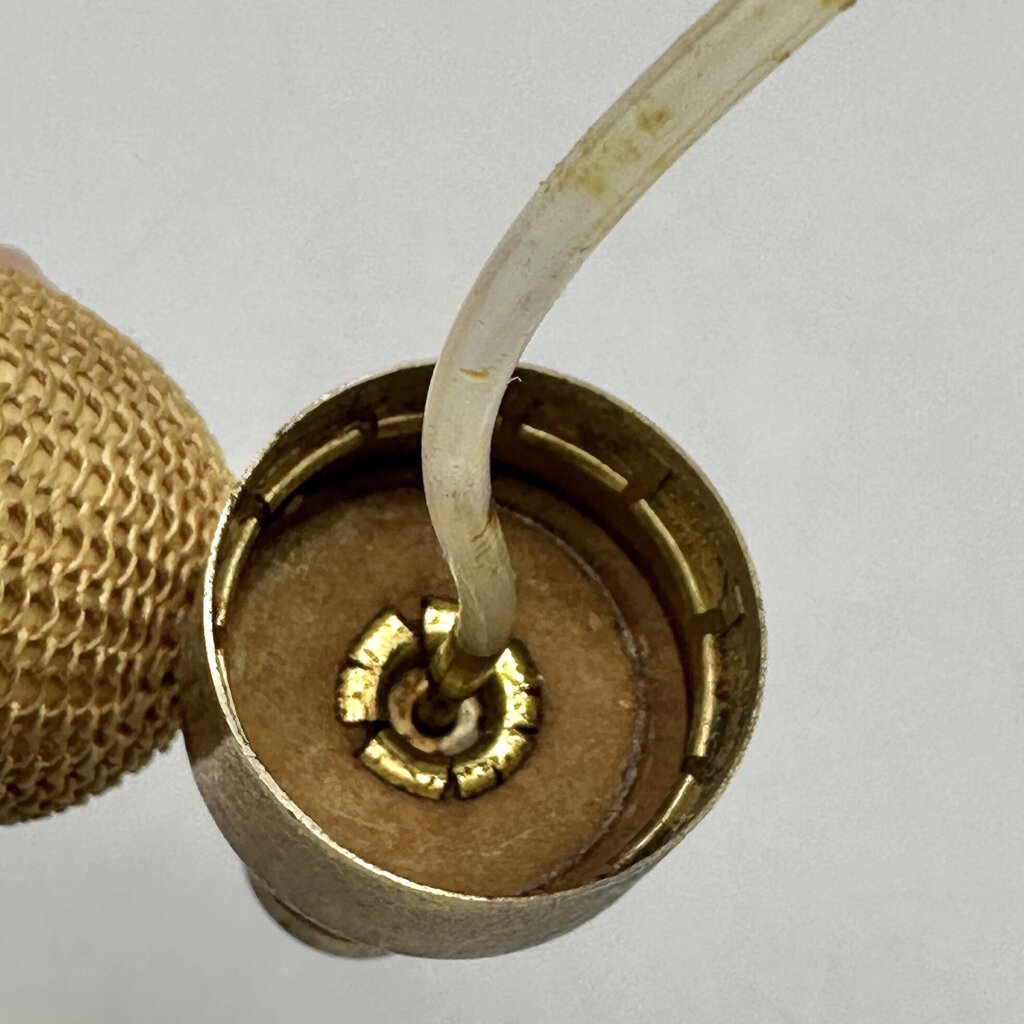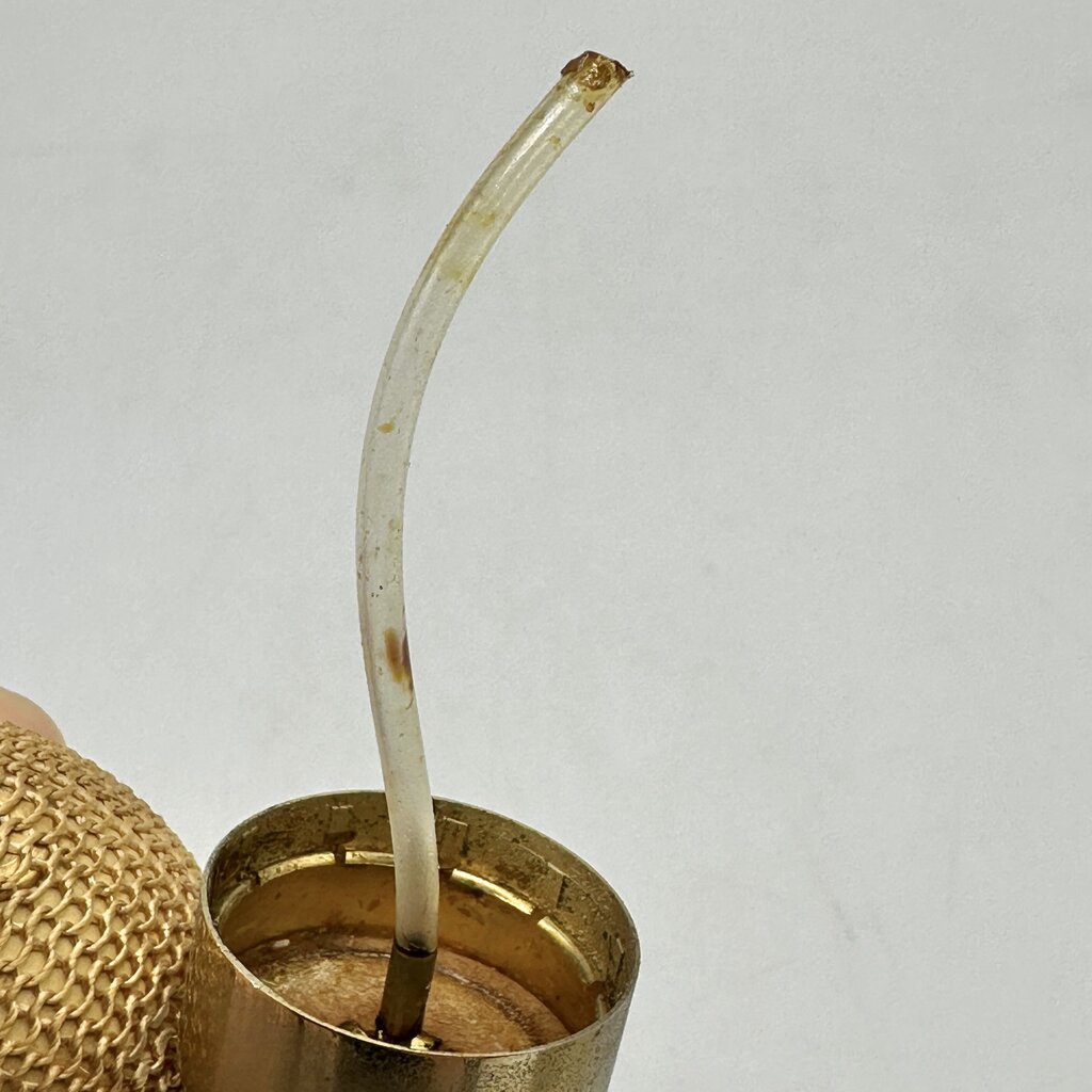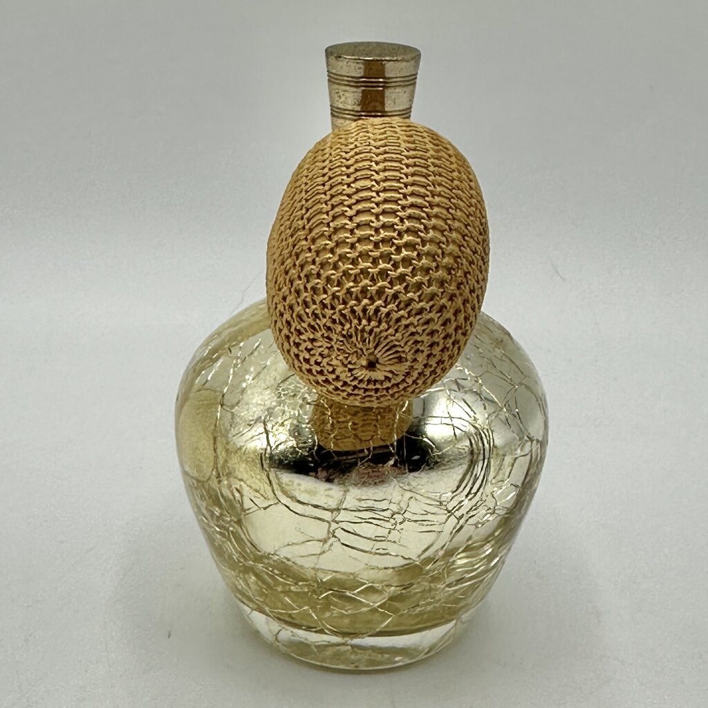This is a very pretty DeVilbiss perfume atomizer from the 1930s/40s. It has a gold crackle glass body and the atomizer is in working condition, it retains remnants of a perfume and the original sticker is attached to the bottom, The bottle is 3 3/4” tall and has a 2 1/4” diameter at its widest. It is in good vintage condition with no chips or cracks but there is light age and use appropriate wear. Please carefully review all photos for condition details.