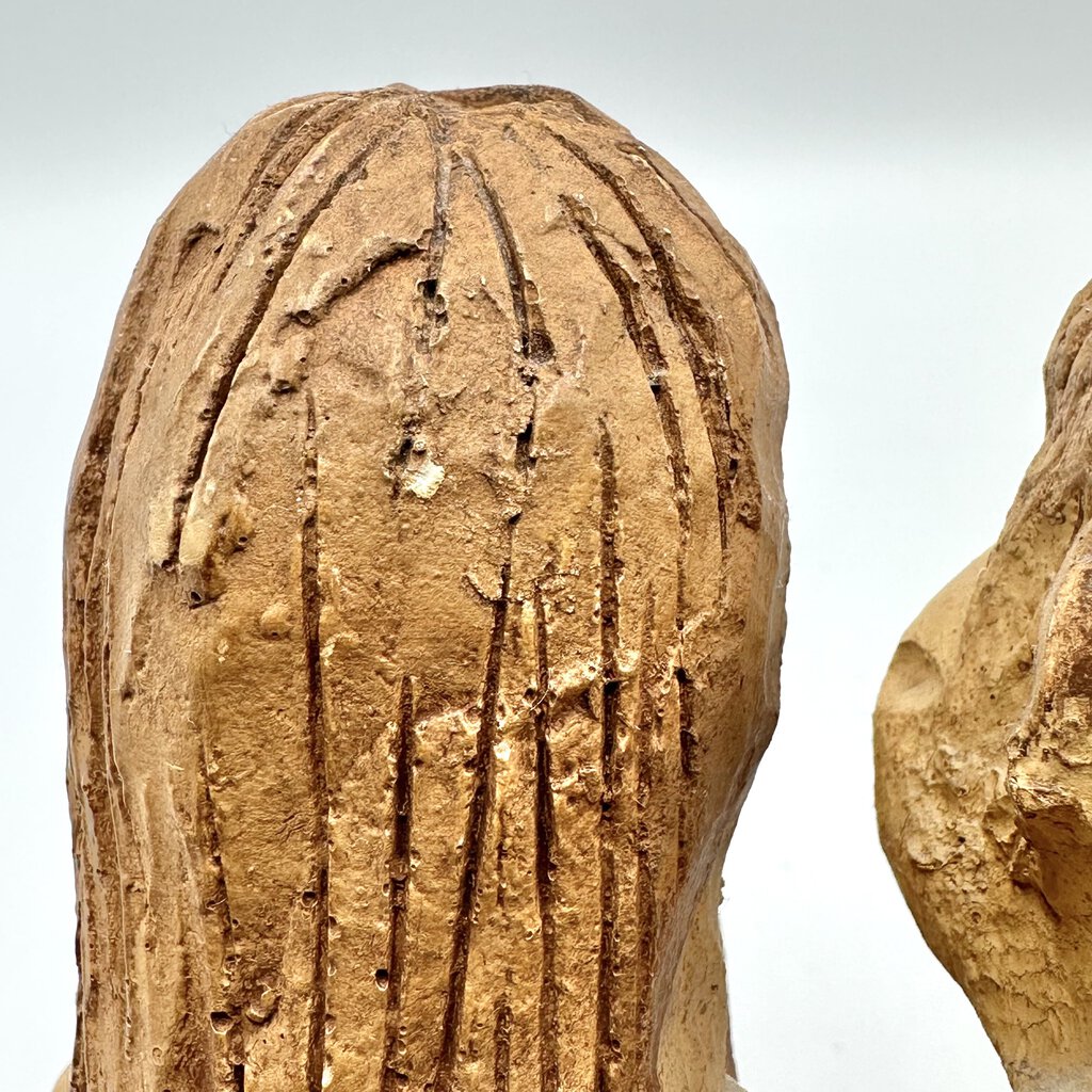 1970s clay sculpture by Lee Bortin Originals Chicago. A boy and girl with the most adorable expression of wonder on their sweet faces. 7 1/8 inches tall, 6 inches wide and 2 1/2 inches deep. Signed on one leg and still has the original sticker. In good vintage condition, has a few small chips. Please see photos for details.