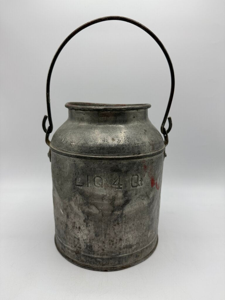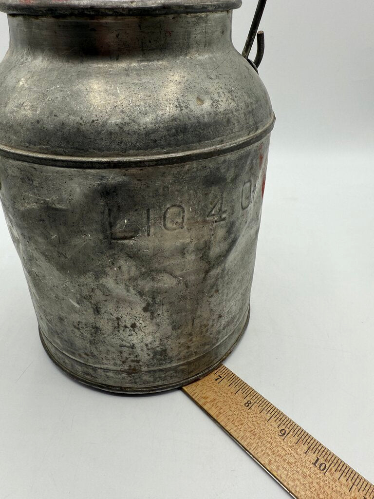 Vintage Metal Milk Jug 4 Quart 9” Tall Farmhouse /rw