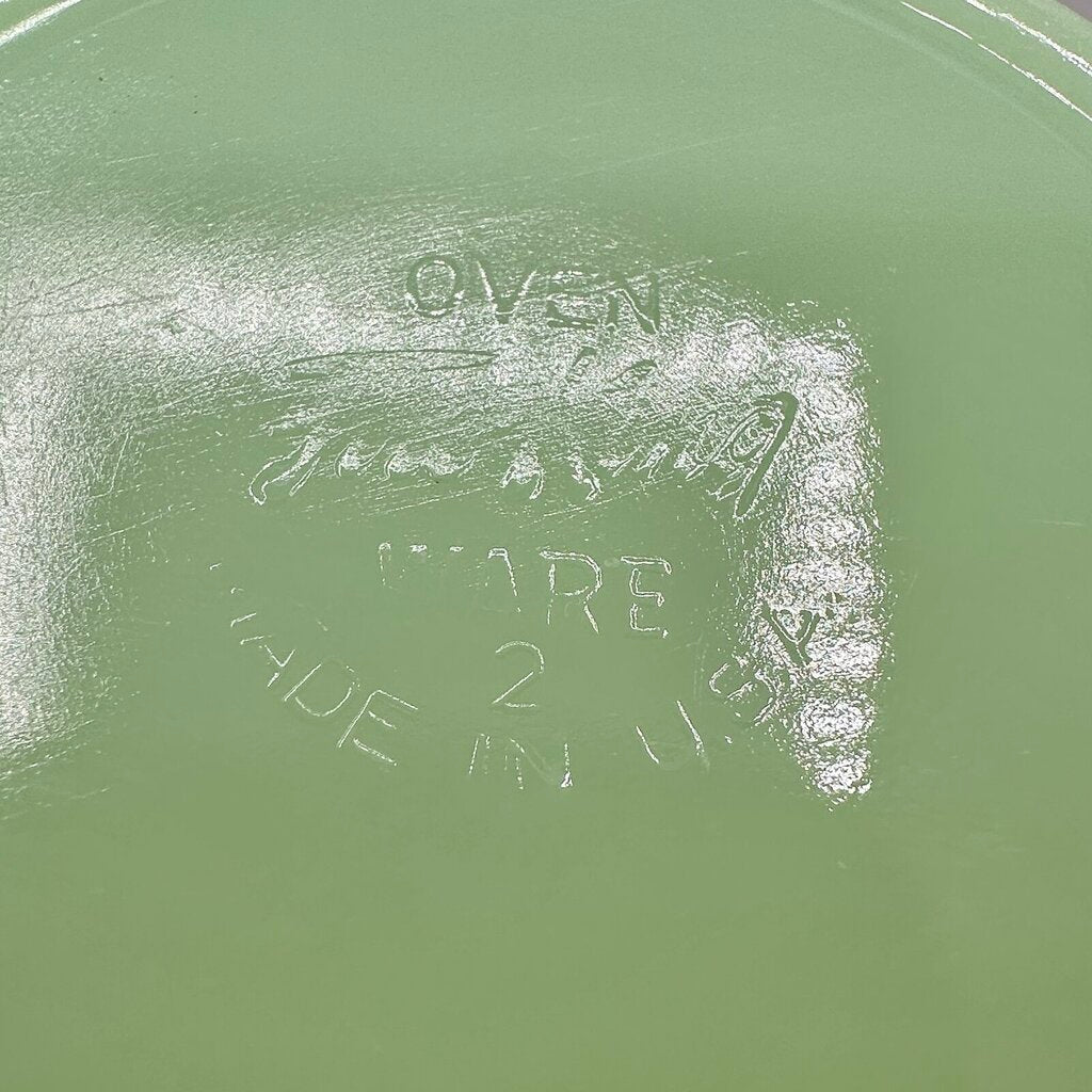 Set of 2 vintage Anchor Hocking Fire King Oven Ware Jane Ray 6” jadeite cereal/soup bowl. Made between 1945 and 1963, they are in very good vintage condition. No chips, or cracks, light utensil wear. Please carefully review the photos for condition details.