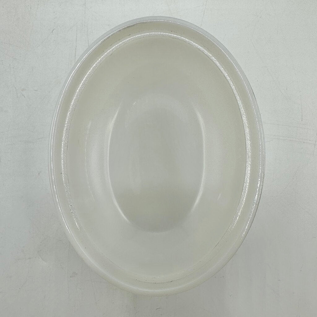 Vintage set of 2 charming milk glass hen on nest dishes. A must have for collectors, these charming pieces represent two of the most thought after brands in American glass history, Westmoreland and Hazel Atlas. The Westmoreland hen is 3” tall, 3 1/2” long and 2 1/2” wide, the Hazel Atlas hen is 3 1/2” tall, 4 3/8” long and 3 1/2” wide. Both are in good vintage condition with light chipping on the rim of the lid but no other major issues. Please carefully review all photos for condition details.