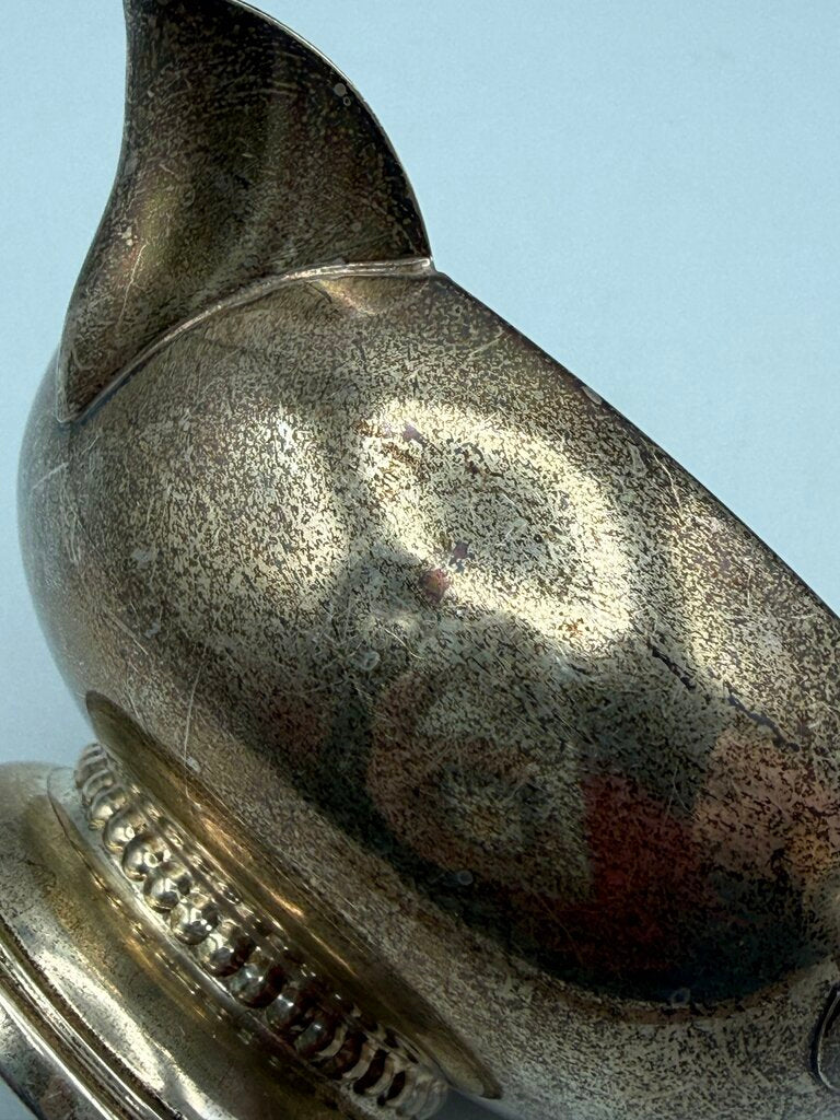 Vintage Amston Sterling Silver Brandy Warmer with spout, wood handle. Marked #1230 on bottom. Gram weight is 84 grams including wood handle, handle can’t be removed. For use or scrap. Some small dents in metal, tarnish and scratches from age and use.