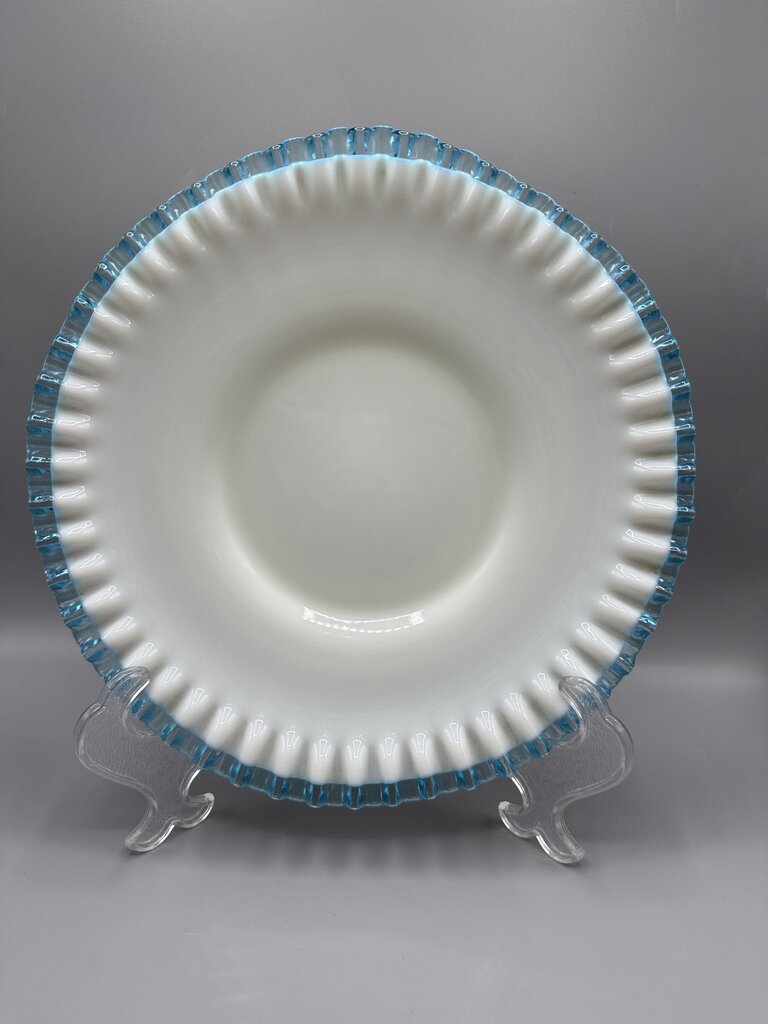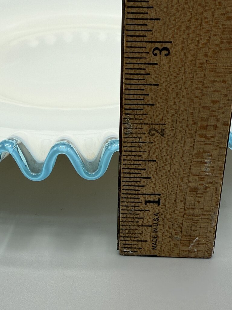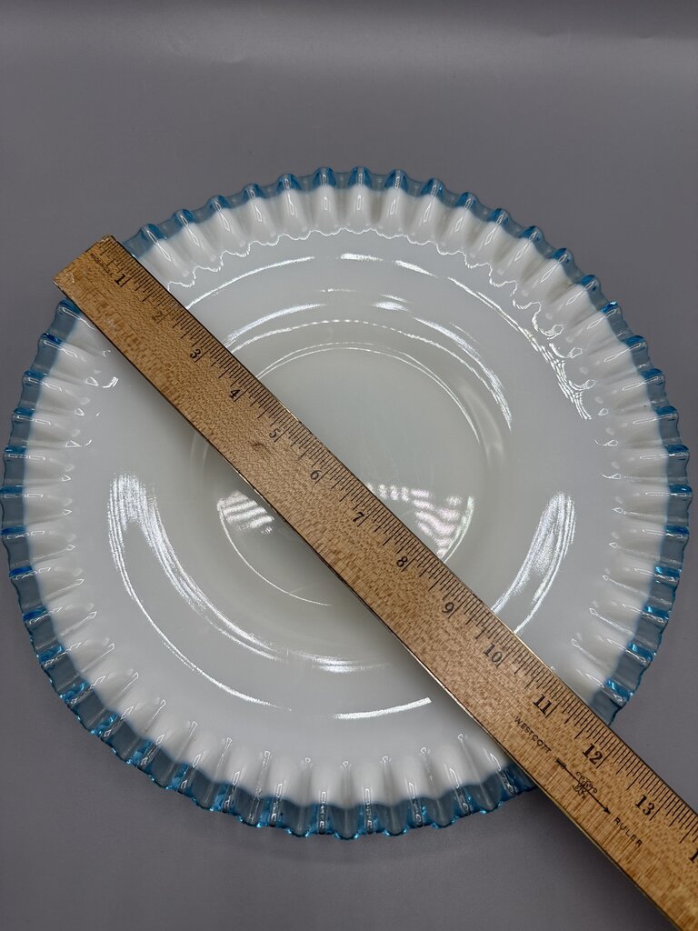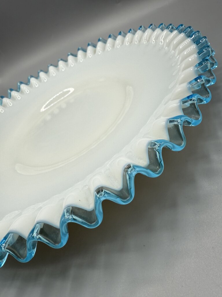 VTG Fenton Aqua Crest Milk Glass Ruffled Edge Platter Cake Plate /rb