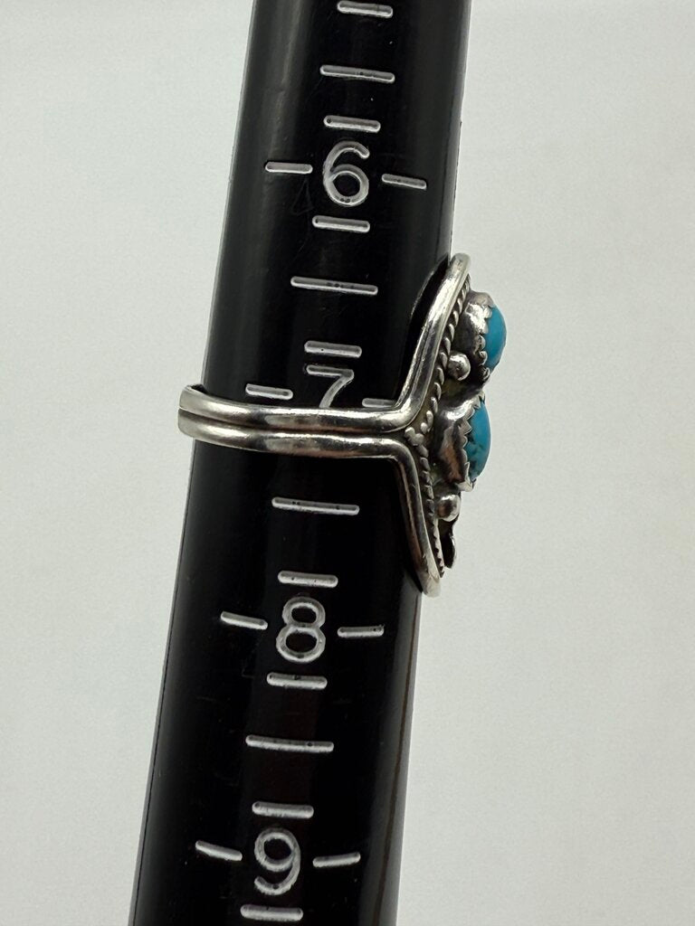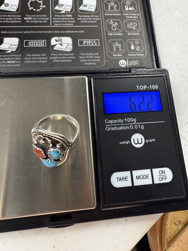 VTG Native American Sterling Silver Turquoise Coral Ring Sz. 7.25 /ro