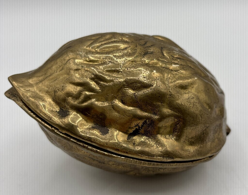 Solid Brass MCM walnut shaped nutcracker. It will make a beautiful addition to any decor and complements a bar cart or coffee table.