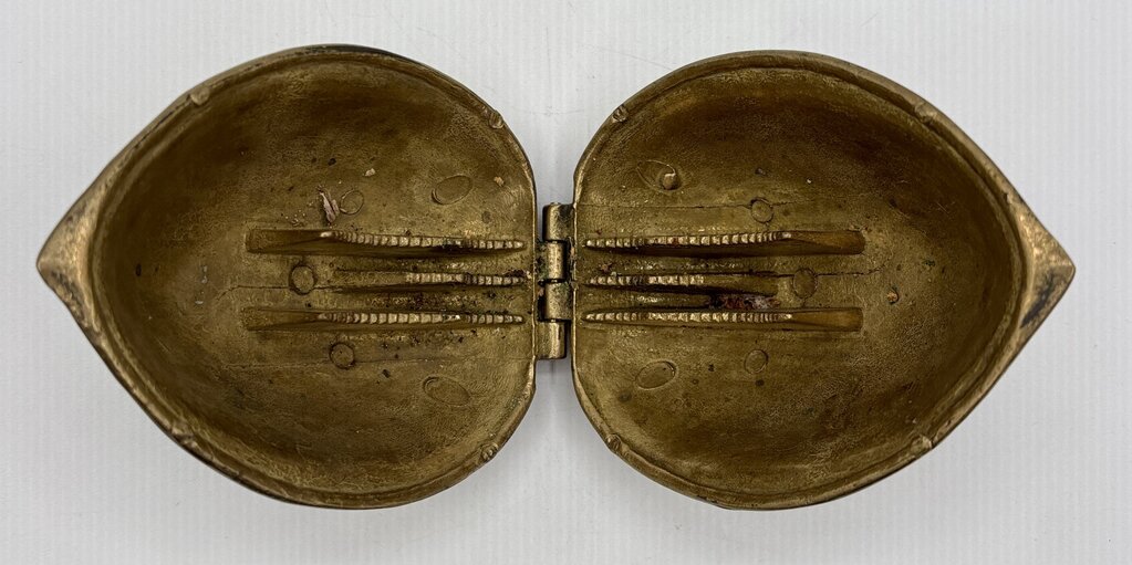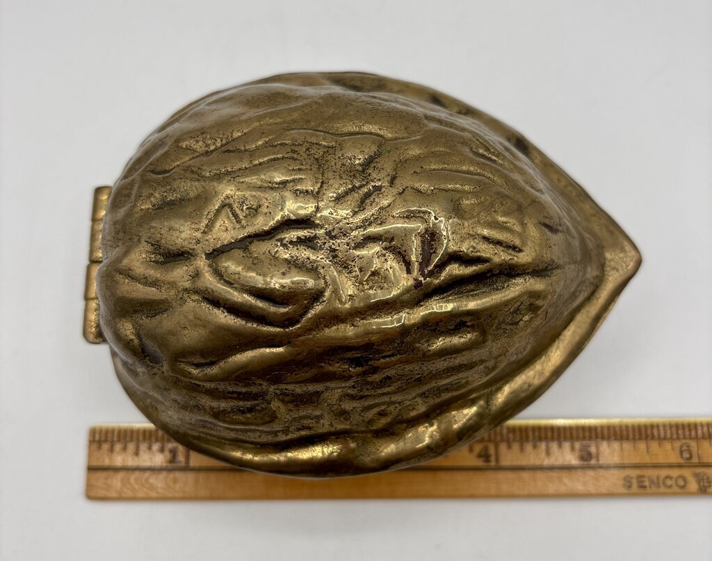 Vtg. Solid Brass MCM Hinged Walnut Shaped Nut Cracker /j