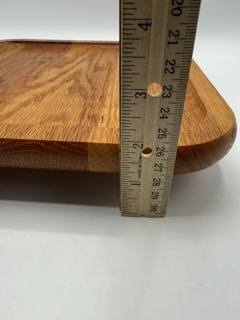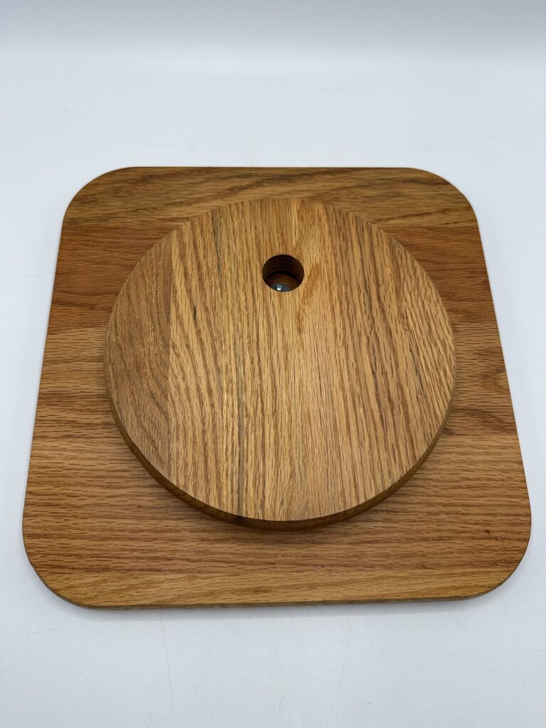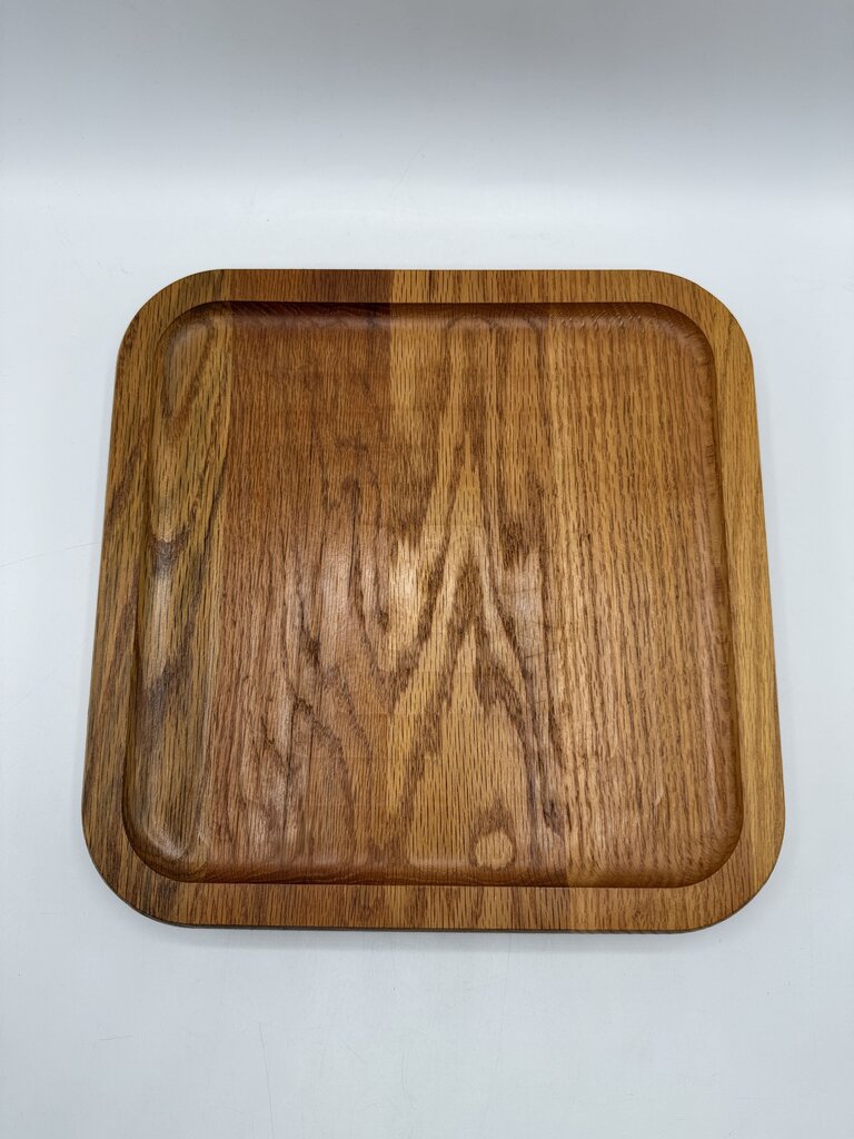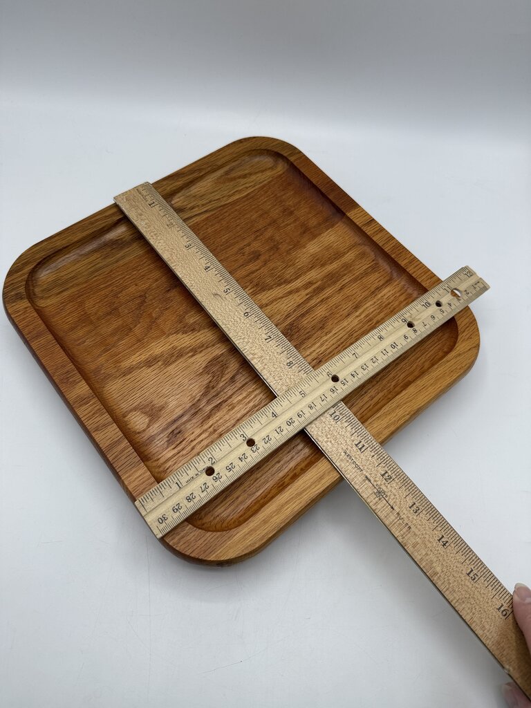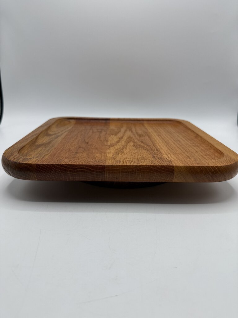 Solid Teak Wood Square Lazy Susan with ball bearing mechanism. No chips or cracks in wood. Measures 11.25” x 11.25” and 2” tall. Raised edge to keep your items from sliding off when spinning.